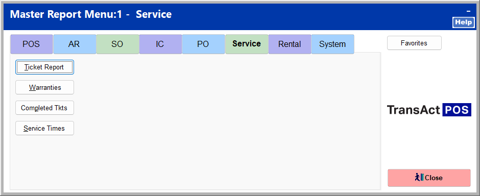 The TransActPOS Service Ticket module is designed to aid in the processing of repair services. Depending upon the type of business, the repair service may be the primary business or a department within a larger organization. In either instance, the Service module handles the repair process in the same format.