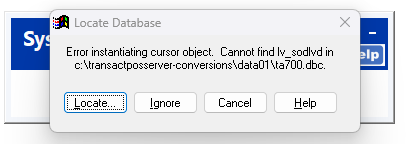 What is the origin of "Cannot find lv_sodlvd in ...ta700.dbc"error when TransActPOS starts?