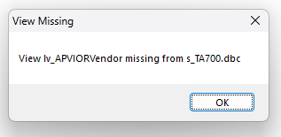 Upon starting the TARepair application, the system will present, in this case, the Missing View for the TA700.dbc