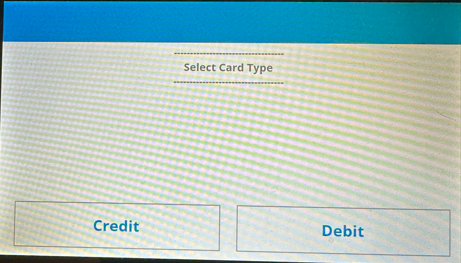 Upon completion of the sale within TransActPOS and the selection of the Payment of Credit Card, the customer-facing Verifone device prompts the customer to specify whether their card is either a credit or debit card:
